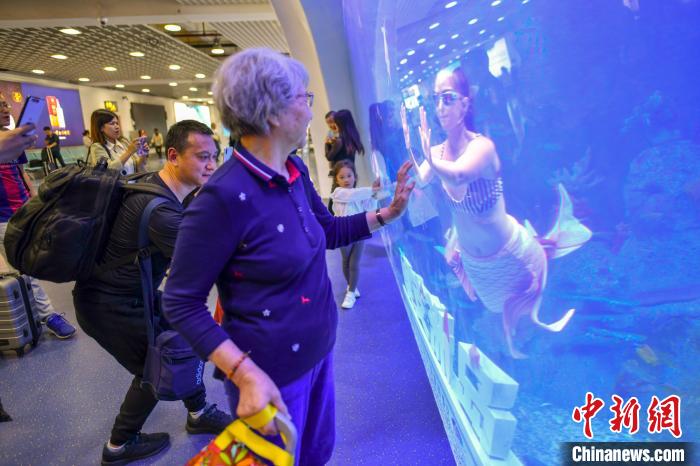 “海洋之眼”水族箱亮相三亚机场 “美人鱼”迎八方来客