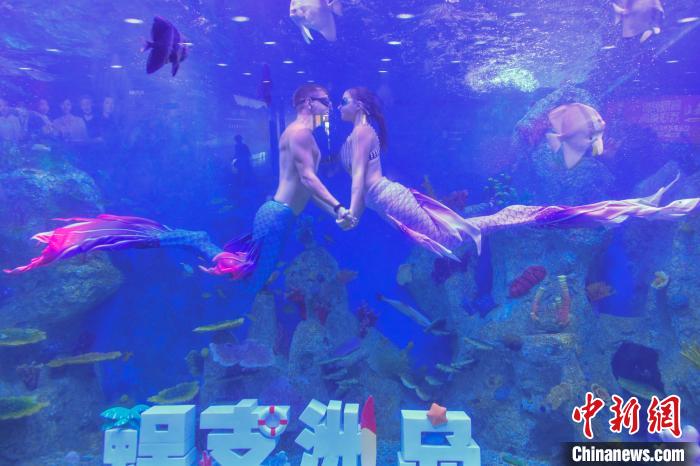 图为两位“美人鱼”亲密互动。 骆云飞 摄