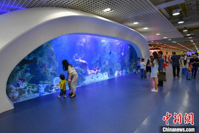“海洋之眼”水族箱亮相三亚机场 “美人鱼”迎八方来客