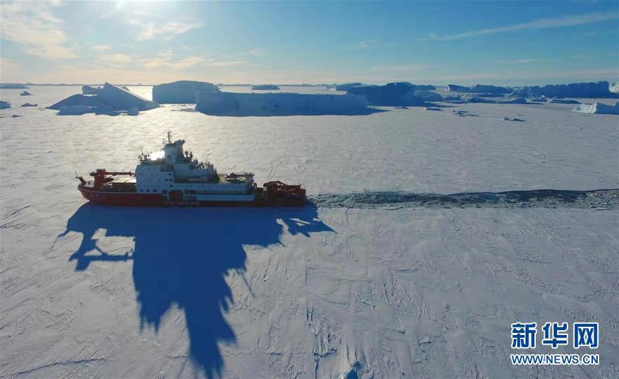 “雪龙2”号完成中山站航道破冰 冰上卸货全面展开