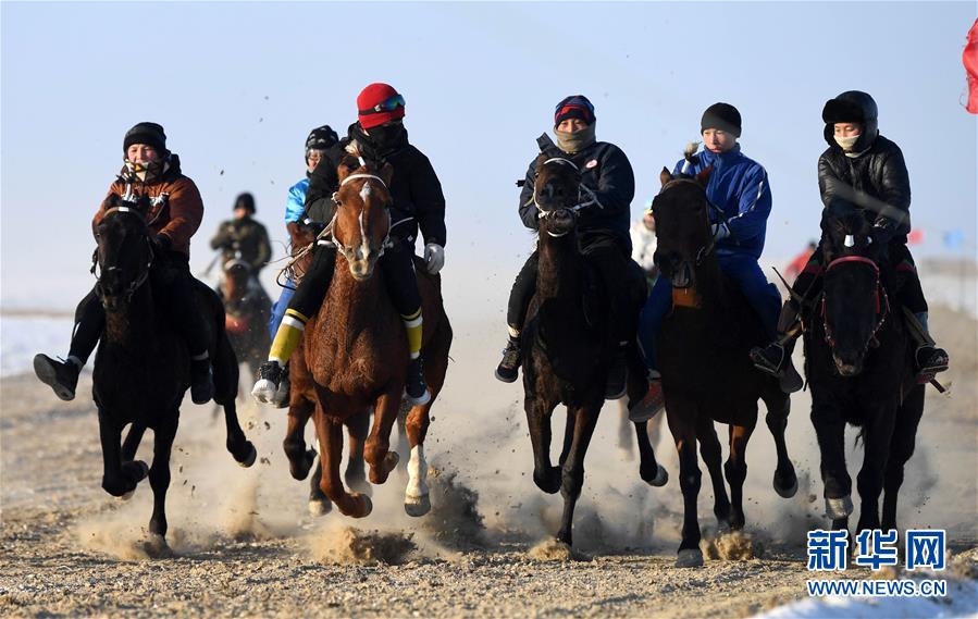 11月26日,在新疆福海县乌伦古湖海上魔鬼城景区,小骑手们参加赛马比赛。 福海县乌伦古湖海上魔鬼城景区位于新疆阿勒泰地区福海县吉力湖东岸,有着独特的雅丹地貌和水域景观,是当地著名的旅游胜地。 新华社记者 沙达提 摄