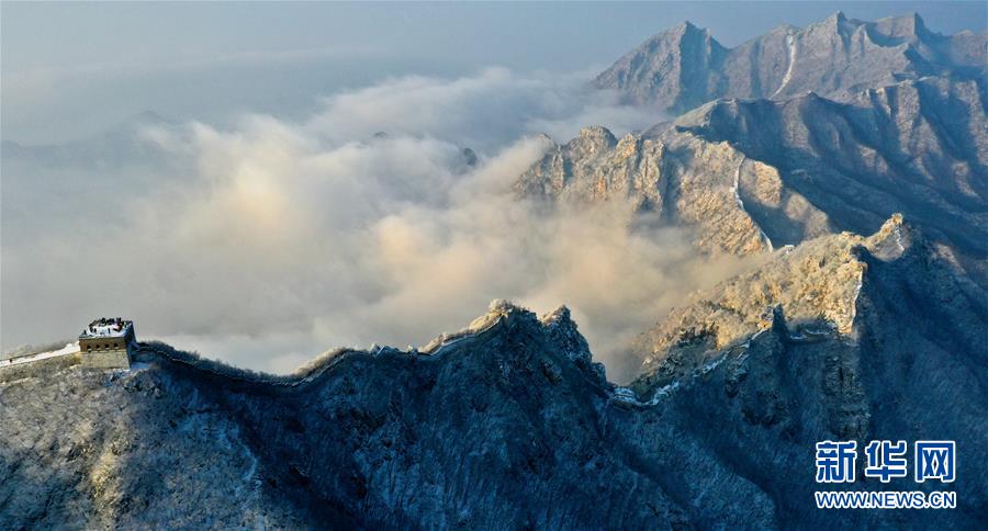 这是11月30日拍摄的北京怀柔箭扣长城雪景。 近日,北京迎来降雪天气。在北京怀柔箭扣长城,晶莹剔透的树挂与蜿蜒的长城交相辉映,构成了一幅壮观的长城冬雪美丽画卷。 新华社发(卜向东摄)
