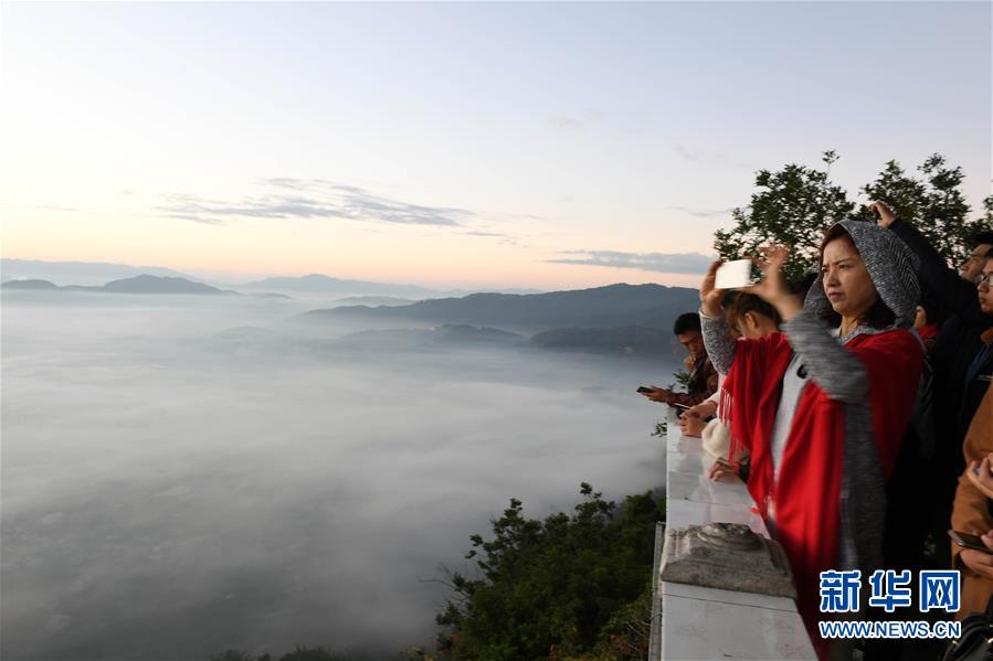 11月30日,人们在拍摄云南省普洱市宁洱县城云海。 冬季里,云南省普洱市宁洱县城云雾飘渺,呈现出云海景观,令游人流连忘返。 新华社记者杨宗友摄
