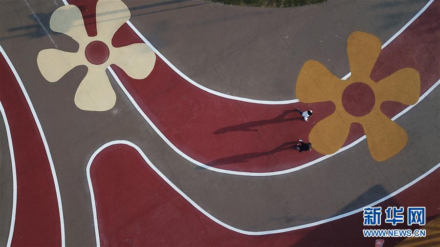 12月8日,游客在合肥市祥源花世界游玩(无人机拍摄)。 当日正值周末,安徽省合肥市天气晴朗,不少市民和游客来到户外休闲。 新华社记者 张端 摄