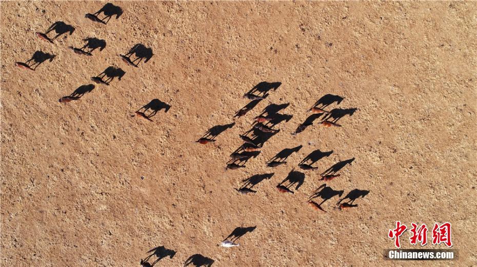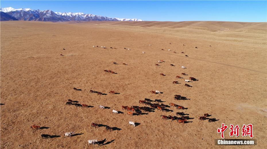 寒冬时节,甘肃山丹马场大草原一片金黄,蓝天白云下骏马自由的飞驰,与远处的巍峨祁连山相映,构成草原独特的风景。山丹马场位于祁连山冷龙岭北麓,是目前世界上最大的马场。王超 摄