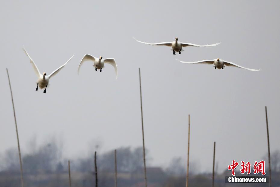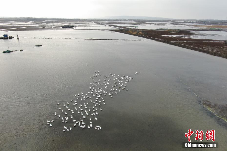 12月15日,候鸟群飞抵江苏盱眙七里湖湿地。淮河流域盱眙县河桥镇七里湖湿地因其较少的干扰、良好的水体,成为众多鸟类迁徙中转站和栖息地,绘就一幅和谐的生态画卷。 中新社记者 泱波 摄
