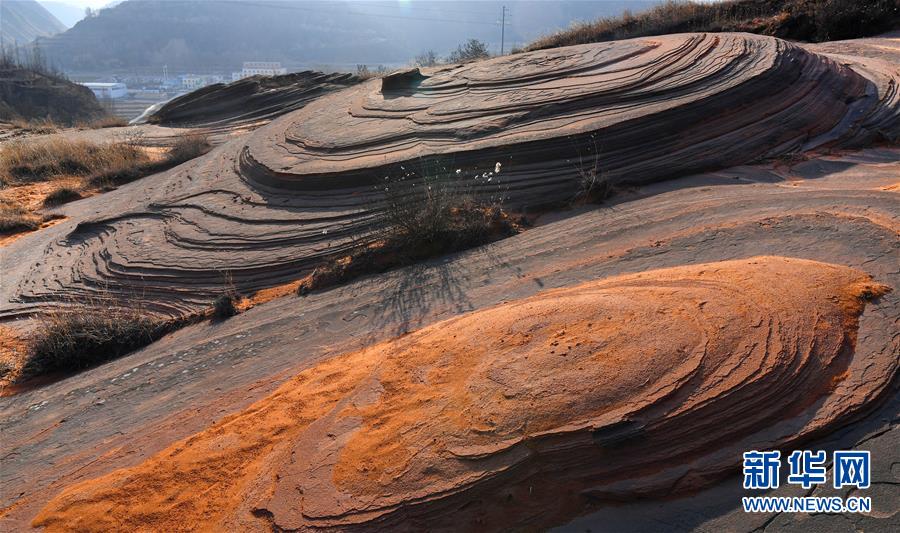 12月16日拍摄的志丹县杏河镇丹霞地貌“螺旋谷”风光。 新华社记者 陶明 摄