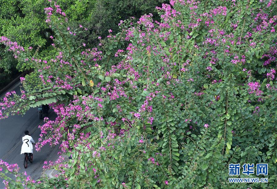 12月17日,市民在南宁市滨湖路上骑行。 冬日,广西南宁绿树成荫,鲜花绽放,景色宜人。 新华社记者 陆波岸 摄