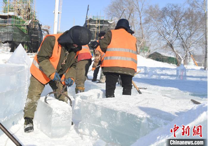 全园共有5000余名冰建师正在紧锣密鼓地运冰、造雪、雕琢。 张瑶 摄