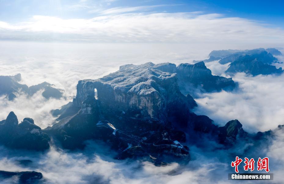 张家界天门山迎降雪 云海、雾凇齐亮相
