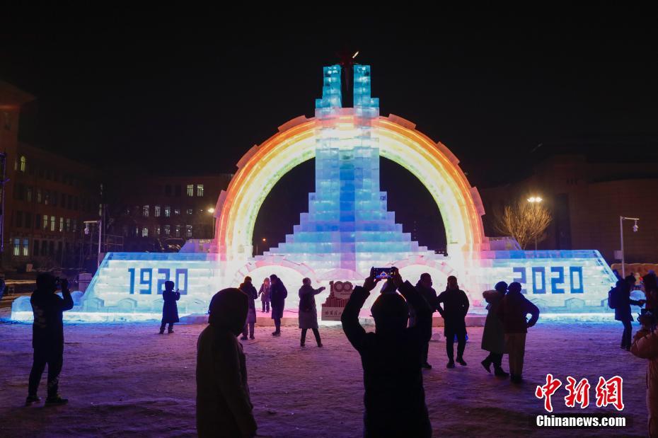 12月19日晚,哈尔滨工业大学第三届冰雪文化节开幕。本次冰雪文化节以“冰情雪韵哈工大 共筑华章迎百年”为主题,展现了独具特色的冰雪校园,让师生在家门口就能体验冰雪文化之美、感受冰雪运动的魅力。图为哈工大校园内的主雕塑。 中新社记者 吕品 摄