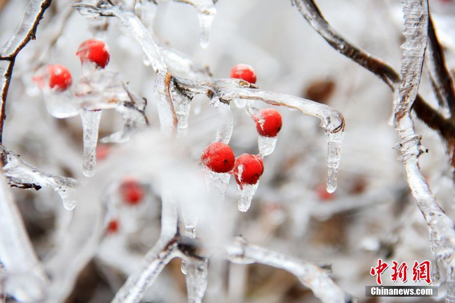 近日,在浙江余姚四明山国家森林公园和仰天湖山庄,山上树枝一夜“白了头”,“冰棍”包裹着树枝,煞是壮观。图/文 张旭东 李典
