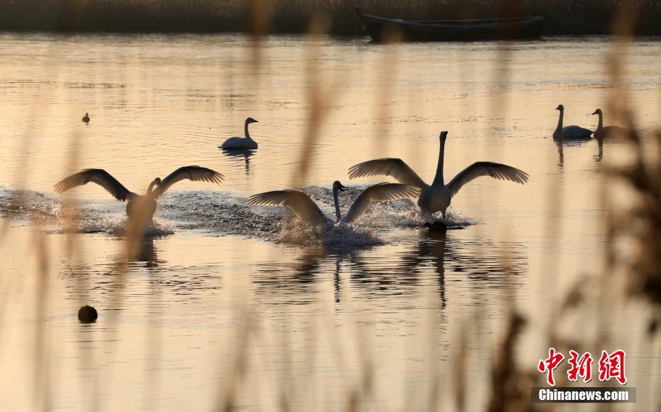 12月25日消息,今年冬天,山东荣成大天鹅国家级自然保护区经过几年的生态修整恢复,芦苇、水草等茂密丛生,在这里栖息越冬的上万只大天鹅,或优雅地游弋饮水,或翩翩起舞,或展翅翱翔,它们灵动的身影与远山,渔船,芦苇等构成一幅意境悠远的生态画卷,美不胜收。