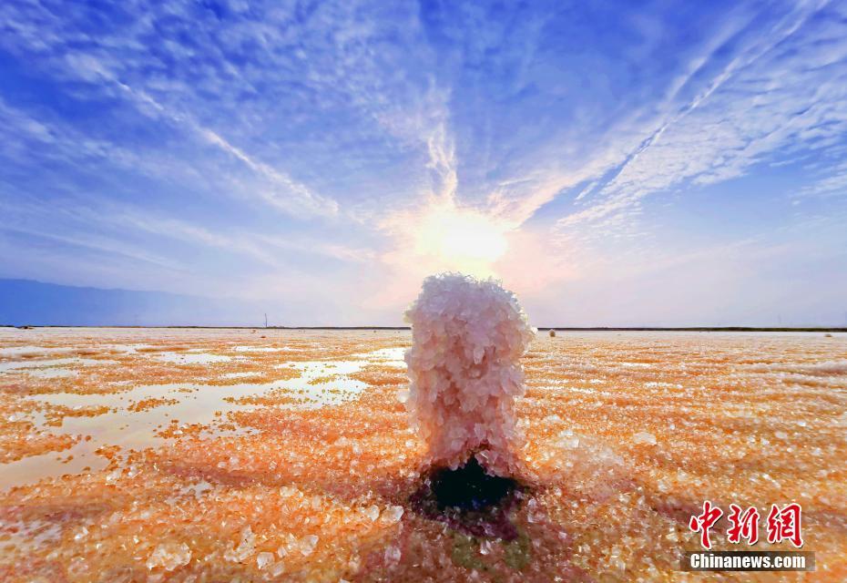 2019年12月28日,山西运城盐湖的”硝花“景观。随着气温下降,山西运城连绵几十公里的千年盐池“开”出美丽“硝花”,在阳光映衬下显得晶莹剔透。“硝花”是一种特殊物理现象,在湖水低于-5℃时,水中的硫酸钠结晶形成”硝花“景观。 中新社发 姜华 摄 图片来源:Cnsphoto