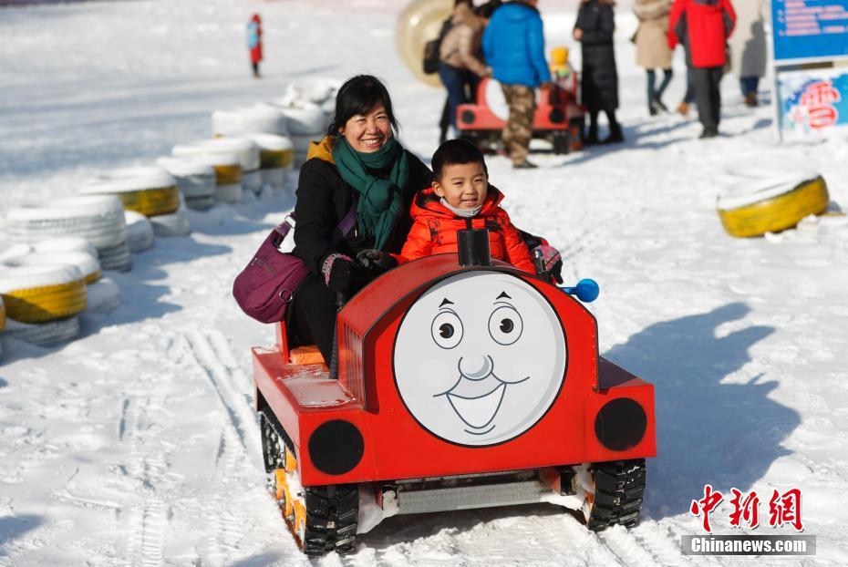 12月31日,以“玉渊冰雪季 健康迎冬奥”为主题的北京玉渊潭公园第十一届冰雪季开启迎新模式。图为游客体验“雪地坦克”。中新社记者 杜洋 摄