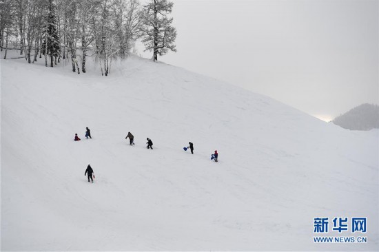 1月1日,小朋友在雪地上嬉戏。新华社记者 宋彦桦 摄