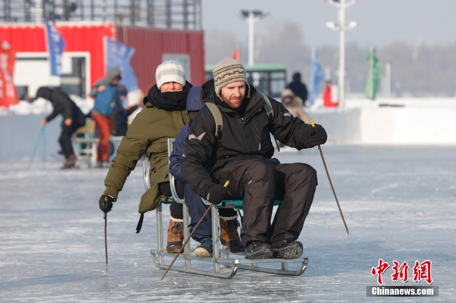 1月2日,一场“时尚冰河”巡游秀在黑龙江省哈尔滨市松花江冰雪嘉年华景区举行。中外游客在严寒中体验冰爬犁、冰滑梯、冰雪气垫船等冰雪娱乐项目。中新社记者 吕品 摄