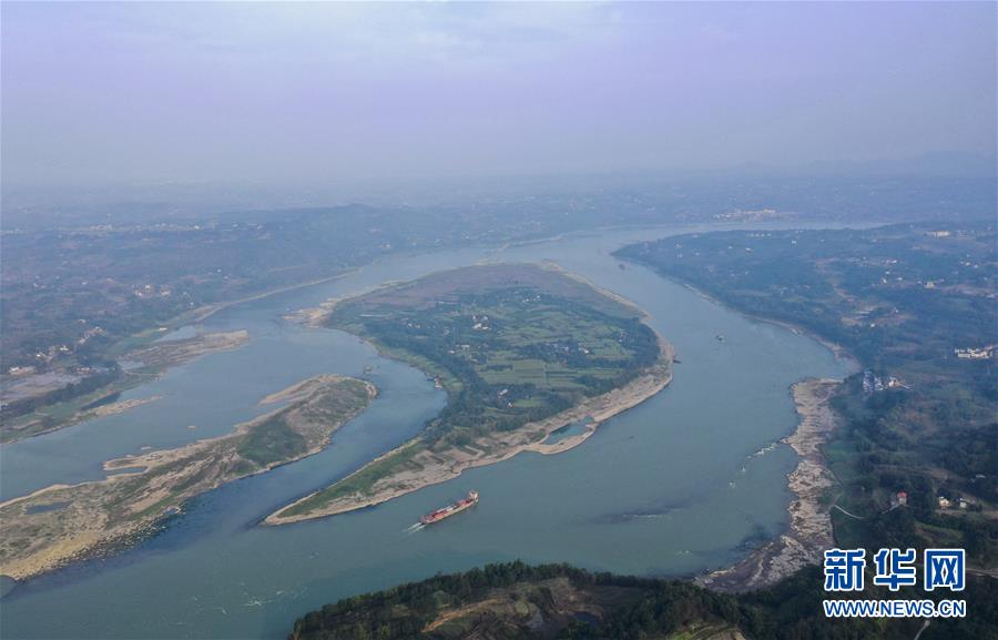 这是重庆江津石蟆中坝岛(无人机照片,1月7日摄)。 长江入渝第一岛的重庆江津石蟆中坝岛,寒冬时节仍然呈现一派原生态的田园风光。 新华社记者 刘潺 摄