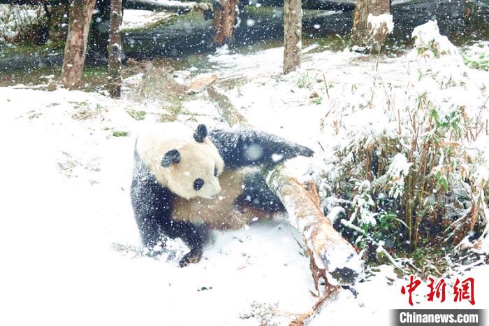 在雪地中玩耍的“奥运”。神农架国家公园管理局供图