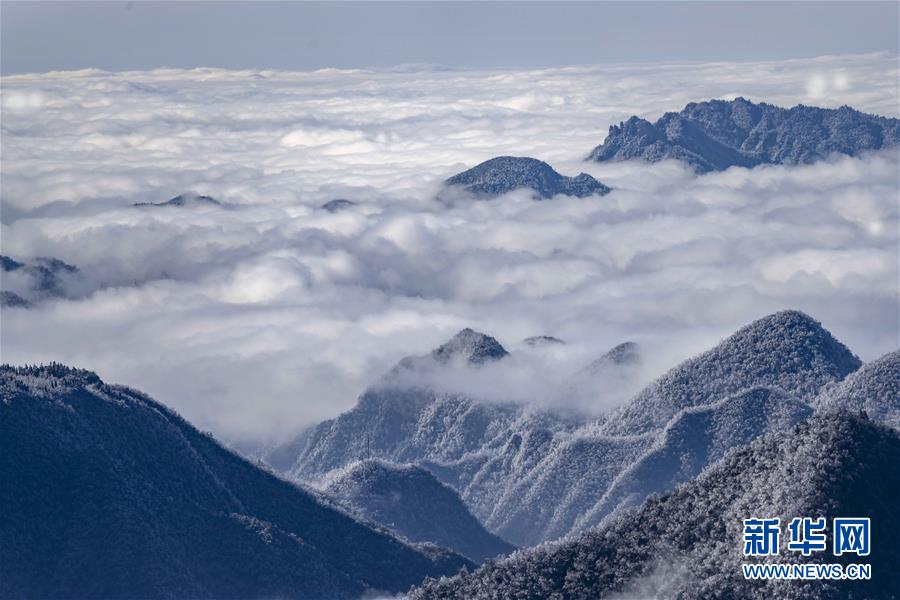 在湖北省五峰国际滑雪场拍摄的云海(1月12日摄)。 当日,湖北五峰国际滑雪场雪后初晴,云雾和高山雪景勾勒出一幅幅美丽的图画。五峰国际滑雪场位于五峰土家族自治县湾潭镇,最高处海拔2129米。 新华社记者 杜华举 摄