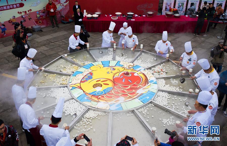 当日,浙江省杭州市萧山区湘湖景区举办传统“年鱼节”,包括湘湖捕年鱼、年鱼集市、大锅品鱼丸、年货集市等内容,以水乡传统年鱼文化为载体,营造出浓浓年味。