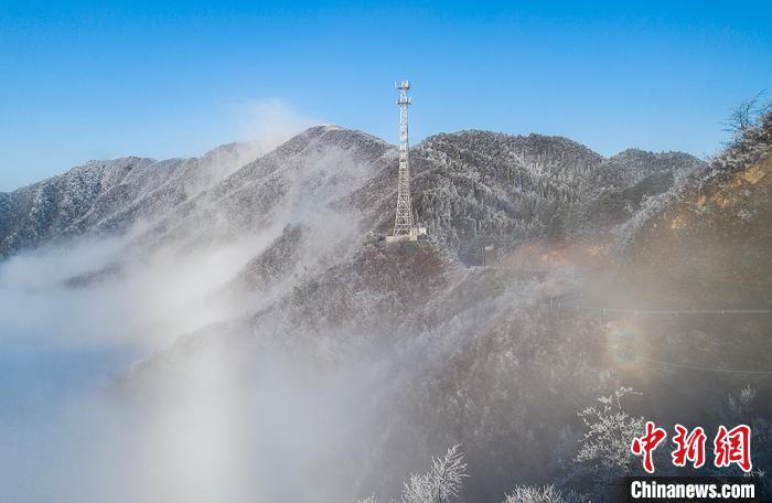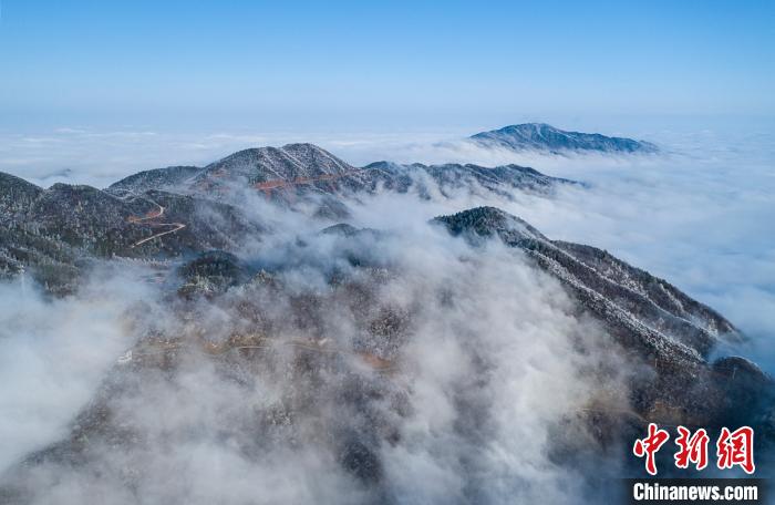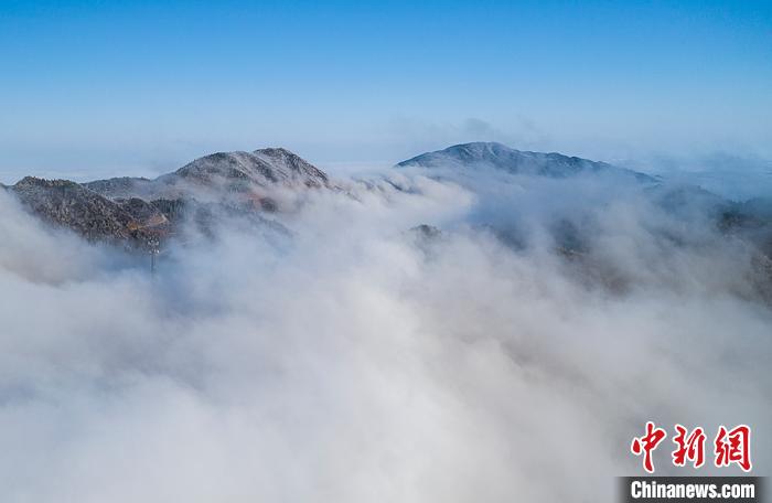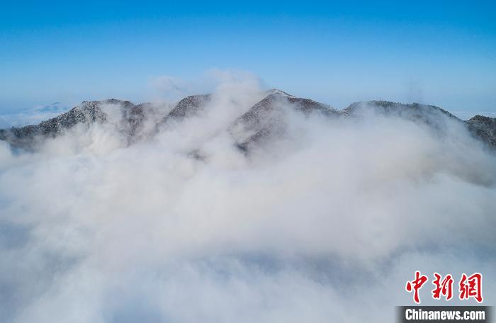 航拍云雾缭绕下的江西武宁太平山。 翁第亮 摄
