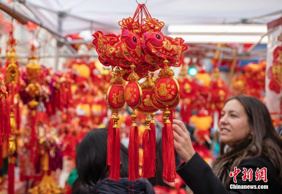 市民被“中国城”春节花市上售卖的节日用品所吸引。中新社记者 刘关关 摄