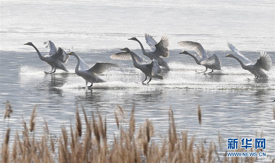 白天鹅在三门峡黄河湿地栖息(1月20日摄)。 进入冬季,大批白天鹅在河南省三门峡市黄河湿地栖息越冬。近年来,当地大力推进黄河湿地生态建设,加强白天鹅保护力度,来此越冬的白天鹅数量逐年增加。 新华社记者 朱祥 摄