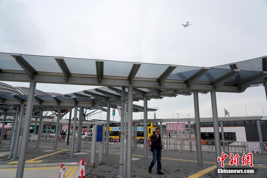 2月4日,港珠澳大桥香港口岸旅检大楼外的巴士站空空荡荡,乘客和车辆稀少。为因应新型肺炎疫情,从2月4日凌晨零时起,香港进一步关闭四个口岸,包括罗湖、落马洲支线、落马洲皇岗及港澳码头,陆路仅剩港珠澳大桥口岸和深圳湾口岸。中新社记者 张炜 摄