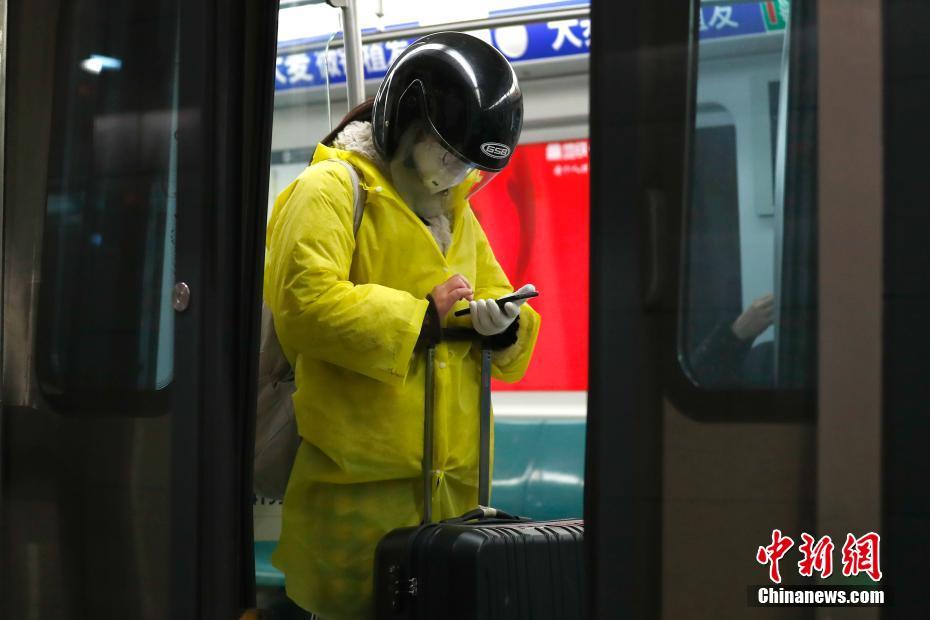 抵达北京南站的返京旅客乘坐轨道交通离站。中新社记者 富田 摄