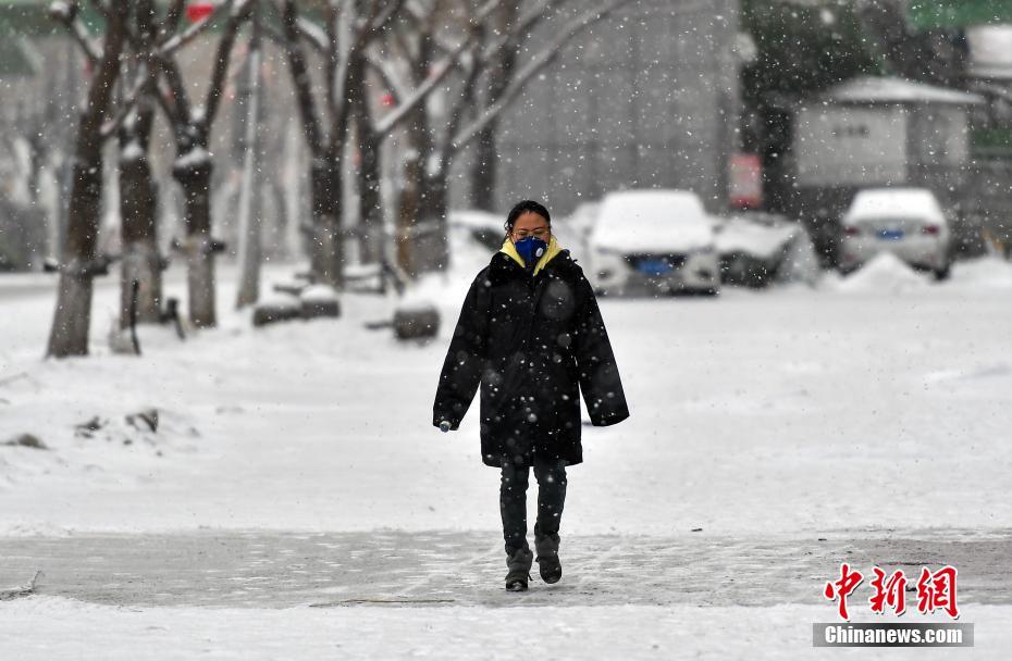 2月19日,新疆维吾尔自治区乌鲁木齐市的市民冒雪出行。受冷空气入侵影响,当地18日晚间出现降雪天气。中新社记者 刘新 摄