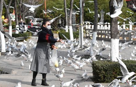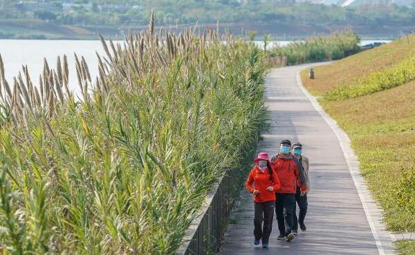 2月19日,重庆市民戴着口罩在嘉陵江边休闲、玩耍。因受新型冠状病毒感染的肺炎疫情影响,市民出行戴上了口罩,做好了防护措施。