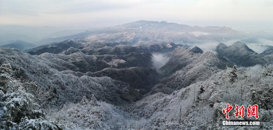 近日气温突降,四川省泸州市古蔺县桂花镇虎头山玉琢银装。图为巍巍群山白雪皑皑,让人沉醉。徐永香 摄