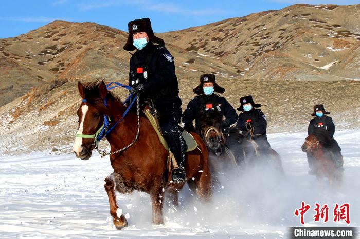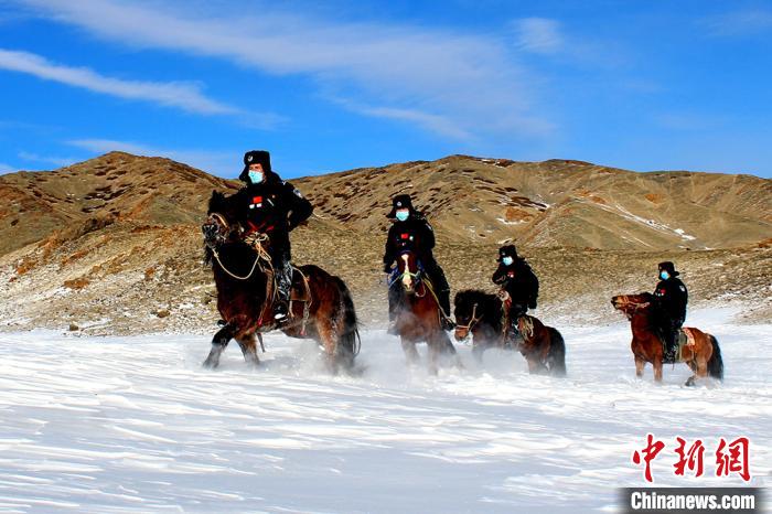 连日来,新疆哈密市伊吾县普降大雪,气温降至-27℃左右,部分道路积雪厚度达到1米左右。新疆出入境边防检查总站哈密边境管理支队前山边境派出所组织民警,以马巡的方式在边境辖区山口前沿进行实地巡逻踏查,及时、准确掌握边境辖区动态,确保边境辖区安全稳定。(孟伟健 张辉)