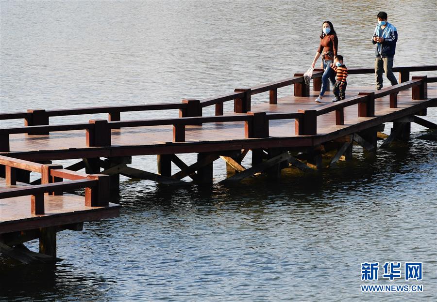 2月25日,游客在福州花海公园游玩。 当日,福建省福州市区阳光明媚,气温回升。一些市民在做好个人防护后来到公园游玩,感受春天。 新华社记者 魏培全 摄