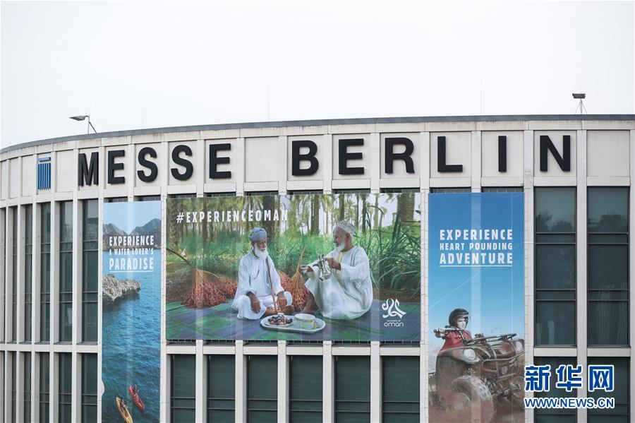 这是2月29日在德国柏林会展中心外拍摄的本届柏林国际旅游展主宾国阿曼的宣传海报。 柏林会展公司28日晚宣布,原定于3月4日开幕的柏林国际旅游展取消。 新华社记者单宇琦摄