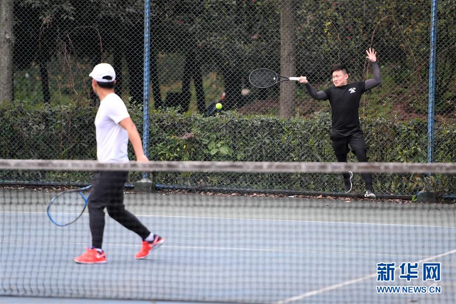 3月8日,市民在动步公园内打网球。 新华社记者 唐奕 摄