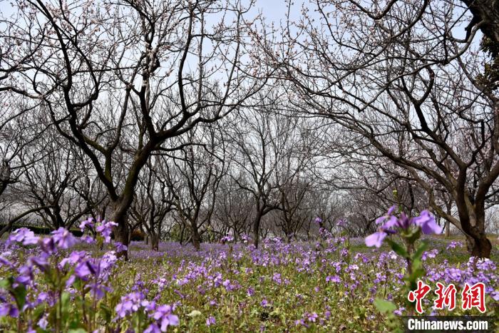 满园的杏花配以地毯一般的二月兰,平添了几分醉人气息。 朱志庚 摄