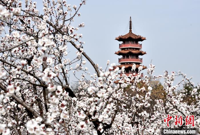 总能令人无限遐想的苏公塔掩映在绽放的杏花丛中。 朱志庚 摄