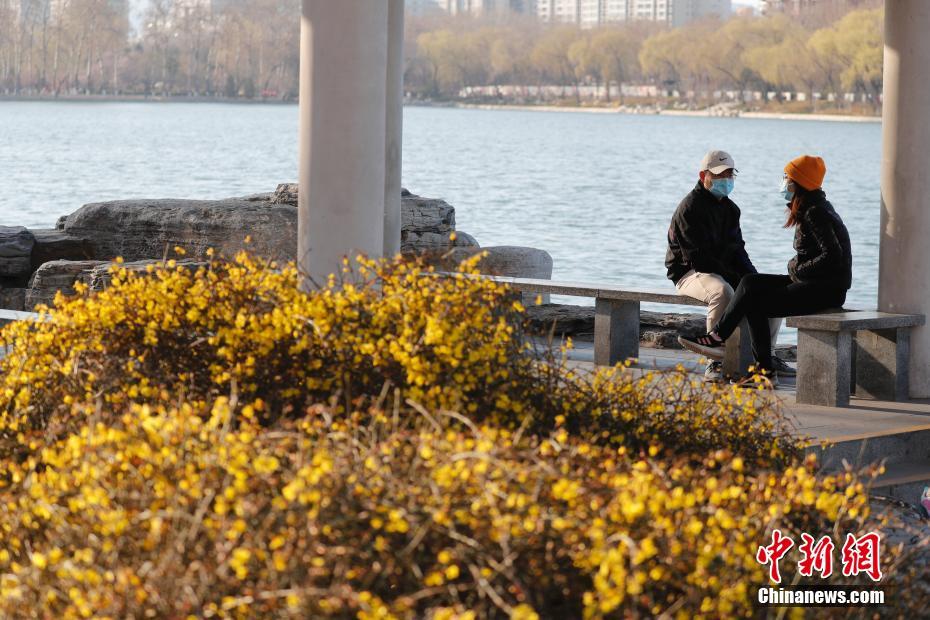 游客在北京玉渊潭公园休闲踏青。中新社记者 杜洋 摄