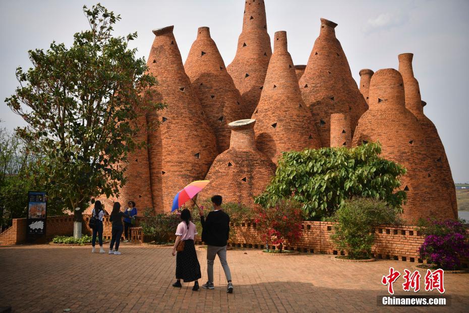 3月16日,游客在景区内游览。随着疫情防控形势逐步转好,部分游客在做好防护措施的情况下,来到位于云南省弥勒市的东风韵艺术小镇游玩。近年来,云南省弥勒市着力打造特色小镇旅游,助力云南旅游转型升级,其中以原创艺术为特色的东风韵艺术小镇被众多游客称为网红“打卡”地。中新社记者 刘冉阳 摄