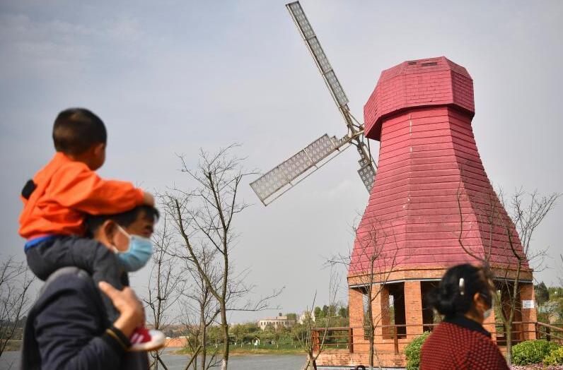 游客戴口罩“打卡”云南弥勒网红旅游小镇