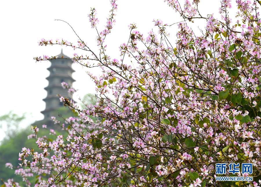 3月24日,广西柳州市水南路上的洋紫荆花盛开。新华社发(黎寒池 摄)