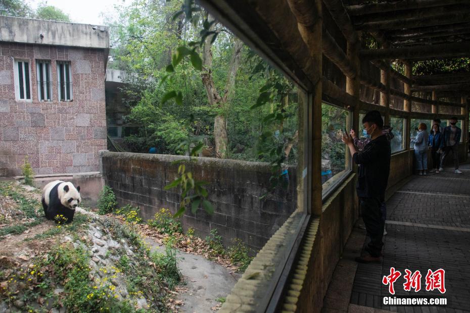3月26日,成都动物园内的大熊猫吸引游客。成都动物园3月25日正式恢复对外开放,为保证开园后游客的健康安全,该园制定了防疫宣传、客流限制等措施,采取“线上实名预约、每日限流接待”的模式进行客流管控和限制,每日限制3000人次以内的游客入园游览。中新社记者 王磊 摄