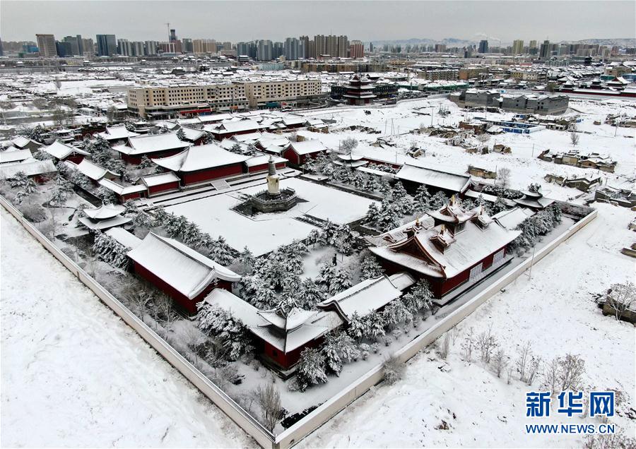 3月26日拍摄的大同古城内的庙宇。 当日,一场春雪将山西大同古城装扮得分外妖娆。 新华社记者 武敌 摄