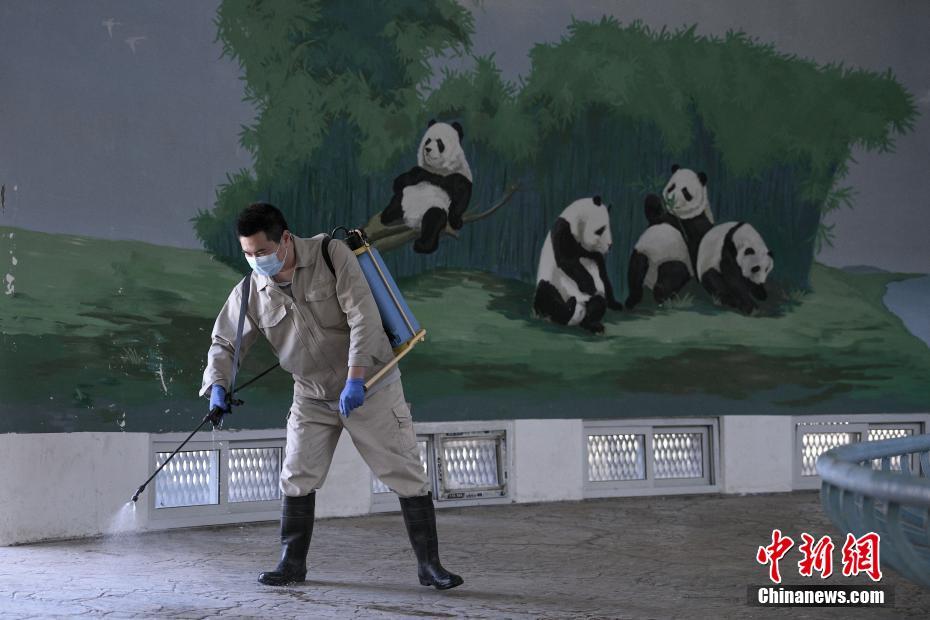 3月27日,工作人员正在对园区进行消杀。当日,天津动物园恢复开放。中新社记者 佟郁 摄