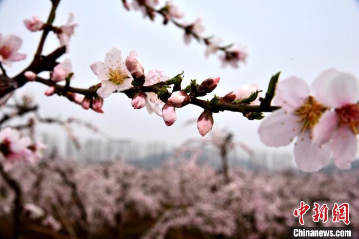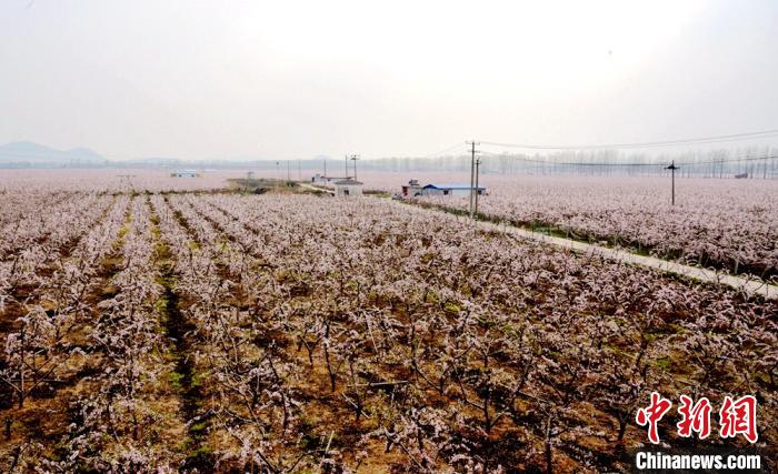 4月1日,随着气温升高,江苏省徐州市铜山区柳泉镇的万亩桃园进入盛花期,漫山遍野的桃花美不胜收。铜山区柳泉镇以西堡村和柳泉村为中心,从2016年开始流转土地连片种植桃树,以种植、销售黄金冠黄桃和黄金蜜黄桃为主,到2019年全镇种植面积达到10000多亩。