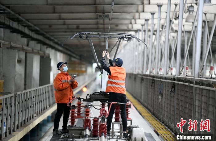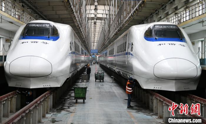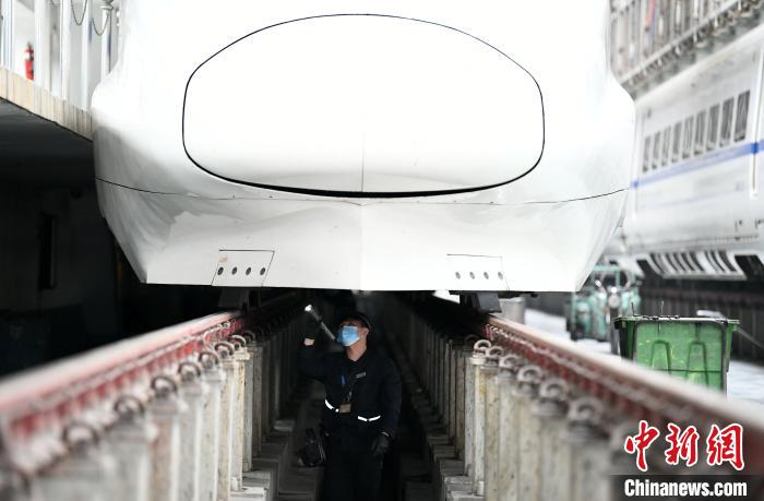 4月2日,南昌车辆段的职工正在南昌客技站对动车组进行检修,迎接清明小长假的到来。 胡国林 摄