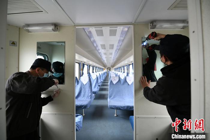4月2日,南昌车辆段的职工正在南昌客技站对客车上部设施进行检修,迎接清明小长假的到来。 胡国林 摄