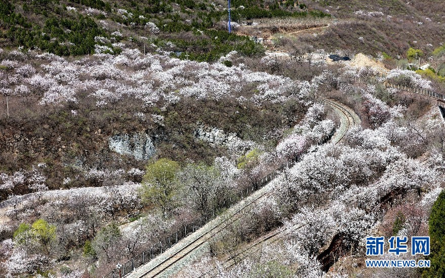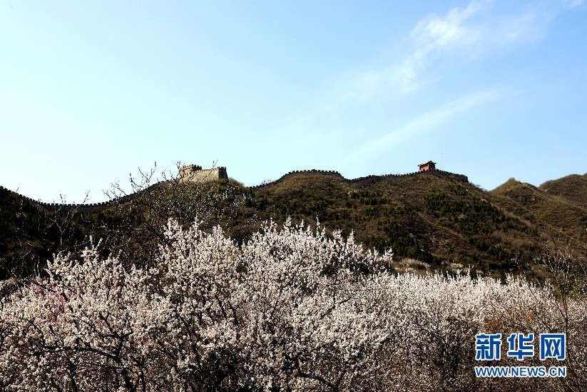 山花烂漫居庸雄姿。新华网王晗 摄